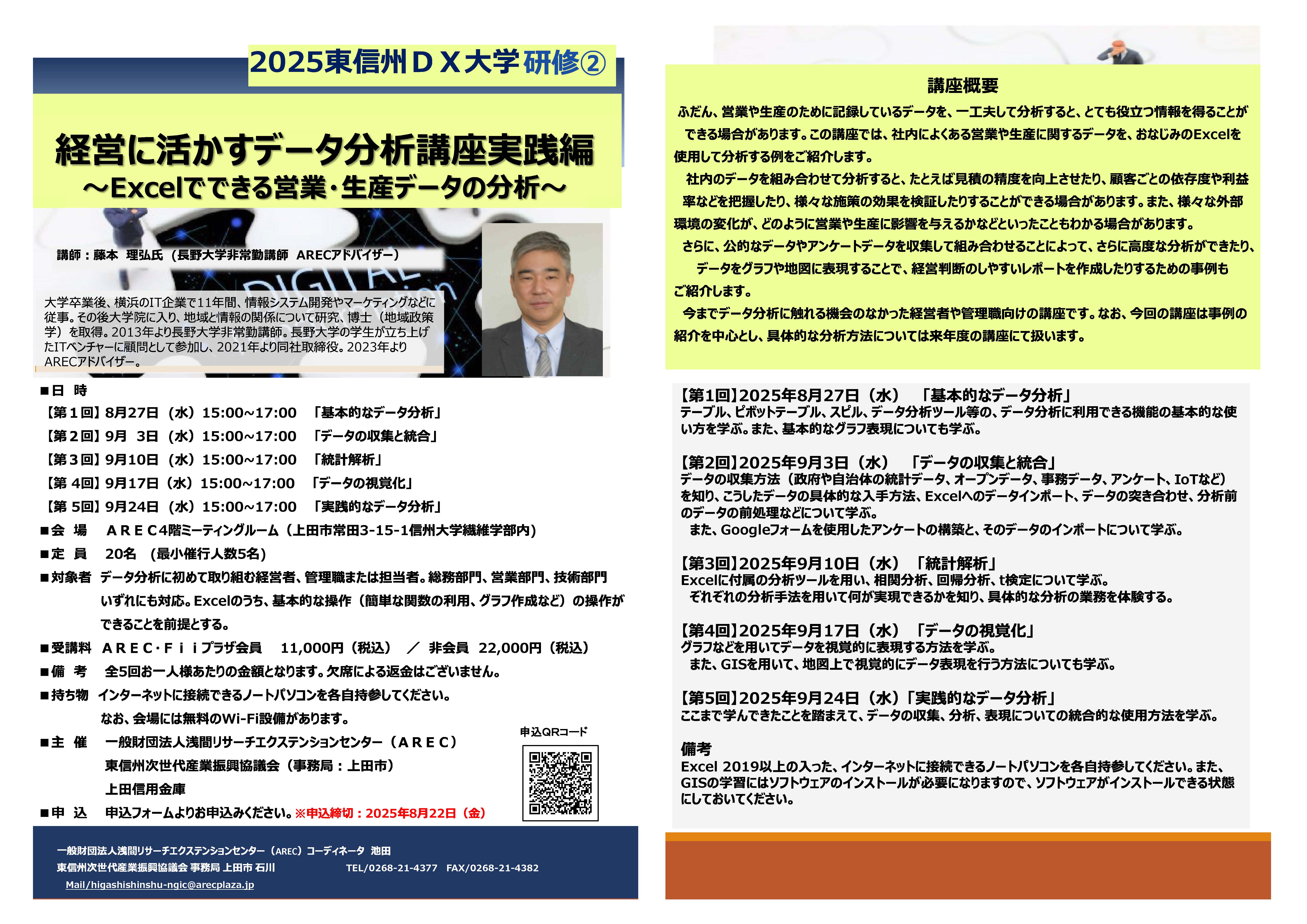 8/27|東信州DX大学2025② 経営に活かすデータ分析講座実践編 ~Excelでできる営業・生産データの分析~ のご案内